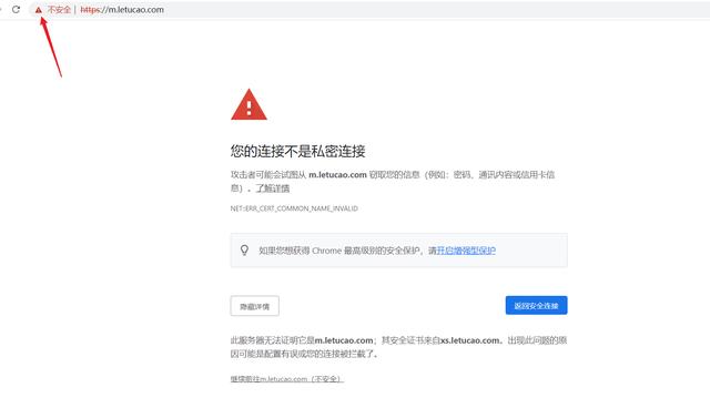 另一个没有配置证书的域名,使用浏览器访问效果如下:
